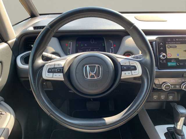 8 Lautsprecher, Airbag Beifahrerseite abschaltbar, Airbag Fahrer-/Beifahrerseite, Aktive Kopfstützen vorn, Anhänger-Stabilisierungs-Programm (TSA), Anzeige für Reifendruck im Display, Autom. Begleitfunktion der Beleuchtung (Coming Home, Leaving Home), Automatische Fahrlichtschaltung / Lichtsensor, Außenspiegel elektr. anklappbar, Außenspiegel elektr. verstell- und heizbar, beide, Außenspiegel mit Bordsteinautomatik, rechts, Außenspiegel silber lackiert, Blinkleuchte in Außenspiegel integriert, Bremsassistent, Dachreling, Einparkhilfe vorn und hinten, Elektr. Bremskraftverteilung, Elektromotor 80 kW (Hybridantrieb), Fahrassistenz-System: Berganfahrhilfe, Fahrassistenz-System: Eco Assist (Econ Modus), Fahrassistenz-System: Fernlichtassistent (HSS), Fahrassistenz-System: Intelligente Geschwindigkeitsanpassung (Tempomat) mit Abstandsregelung I-ACC, Fahrassistenz-System: Kollisionswarnsystem mit Bremseingriff und Fußgängererkennung (CMBS), Fahrassistenz-System: Sicherheitssystem mit automatischem Notruf (ERA GLONASS / eCall), Fahrassistenz-System: Spurhalteassistent (LKAS / LDW), Fahrassistenz-System: Spurverlassenswarnung (Lane Departure Warning, LDW), Fahrassistenz-System: Stauassistent (LSF), Fahrassistenz-System: Verkehrszeichenerkennung, Fensterheber elektrisch vorn und hinten, mit Auf-/Ab-Automatik, Freisprecheinrichtung (Bluetooth) mit Sprachsteuerung, Gepäcknetz an Vordersitzlehne links, Gepäcknetz an Vordersitzlehne rechts, Gepäckraumabdeckung / Rollo, Getriebe Automatik stufenlos, Getränkehalter vorn, Gurtstraffer, Heckleuchten LED, Hybrid 80 kW (Motor 1,5 Ltr. - 72 kW), Infotainment-System: Honda Connect mit 9" Touchscreen / Garmin Navi / Internetbasierende Dienste / DAB-Tuner, Isofix-Aufnahmen für Kindersitz, Karosserie: 5-türig, Klimaautomatik, Knieairbag Fahrerseite, Kopf-Airbag-System, Lenksäule (Lenkrad) höhenverstellbar, Leseleuchten vorn, LM-Felgen, Motorsound-System (Acoustic Vehicle Alerting System, AVAS), Multi-Info-Display (i-MID), Multifunktion für Lenkrad, Nebelscheinwerfer LED, Otto-Partikelfilter (OPF), Parkbremse elektrisch, Reifen-Reparaturset, Rückfahrkamera, Rücksitz geteilt / klappbar, Rücksitze im Fahrzeugboden versenkbar, Schadstoffarm nach Abgasnorm Euro 6d, Schalt-/Wählhebelgriff Leder, Scheinwerfer LED, Seitenairbag hinten, Seitenairbag vorn, Seitenairbag vorn mitte (Center-Airbag), Sitz vorn links höhenverstellbar, Sitzbezug / Polsterung: Stoff, Sitzheizung vorn, Smartphone Schnittstelle (Apple CarPlay & Android Auto), Sonnenblenden mit Make-up-Spiegel, Steckdose (12V-Anschluß) in Armaturentafel, USB-Ladeanschluß hinten (2-fach), USB-Ladeanschluß vorn, USB-Schnittstelle, Verglasung hinten abgedunkelt (Privacy Glass)
